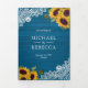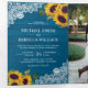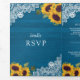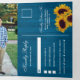 Malibu Blue Wood Lace Sunflower Wedding Photo Tri-Fold Invitation