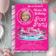 Malibu pool birthday party invitation with cute plastic life pool hot pink background and a spot for your photo. This pink doll Malibu pool birthday party invitation works for any age, simply add your event details.