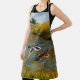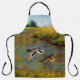 Male and female mallard ducks in flight over a golden pond, water rippling to reflect the colours of the background autumn foliage glowing in the sunlight. Realistic artwork created from an original oil painting by wildlife artist Crista S. Forest.