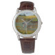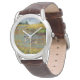 The watch looks really great! Very sharp and well done. The leather band is really nice, though for a man's watch I think it should be longer. Unfortunately, it isn't big enough for my husband's wrist but I will get a replacement because he is very excited to wear it!