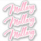 Mallary name in pretty pink decorative cursive script font lettering. Three copies.