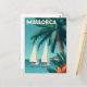 This vintage-style poster captures the serene beauty of Mallorca's coastline, where gentle waves meet golden beaches lined with swaying palm trees. Elegant sailing boats glide across the turquoise sea beneath a warm, sunlit sky. Rendered in soft retro colours and textures, the artwork evokes the charm of mid-century Mediterranean holidays — perfect for travel lovers and fans of vintage coastal design.