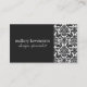 Mallory #2 Chic Black Damask Business Card by BoutiqueMama.com. To customise this design, click on the Customise It link. Matching web design available at BoutiqueMama.com!