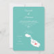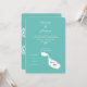 Stylish destination Malta wedding invitation for couples getting married abroad in the beautiful island of Malta which is shown in a map silhouette with sweet red love hearts. In tones of teal and white with a lacey patterned circle on the back, very pretty and easy to customise with your wedding details.