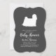 Include the big brother or sister fur baby in the celebration with this adorable Maltese dog baby shower design! Perfect for a puppy lover with a baby on the way. The Maltese is next to an adorable vintage carriage. The chalkboard grey background makes it perfect for a gender neutral or co-ed shower!