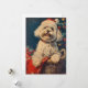 Sending festive cheer your way! This Christmas card features an adorable Maltese dog, adorned with a merry Santa hat. The fluffy white fur of the Maltese complements the jolly red hat, creating a heartwarming scene that captures the holiday spirit. Share the joy of the season with this charming card, as this festive pup is ready to spread smiles and warm wishes to your loved ones.