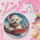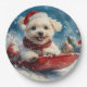 Maltese Dog in Sledge Let it Snow Christmas Paper Plate