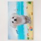 Cute dog sitting on beach is a perfect gift idea for someone who love this dog breed.