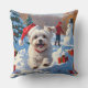 Maltese Dog Running in Snow with Christmas Hat Cushion