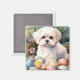 Maltese Dog with Easter Eggs Holiday Magnet