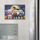 A playful Halloween scene featuring a mischievous little pup peeking out of a carved pumpkin, surrounded by spooky-fun fall vibes. With cheeky charm and autumn colours, it’s the perfect touch of humour for the season.