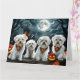 Unleash the spooky spirit with this eerie Halloween design featuring a pack of dogs under a dark, moonlit sky, surrounded by flying bats and glowing pumpkins. Perfect for those who love a touch of frightful fun with their furry friends!