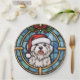 Elevate your holiday decor with this exquisite stained glass Christmas ornament. Crafted with meticulous attention to detail, this ornamental masterpiece captures the essence of canine charm. Its vibrant colours and intricate design evoke a sense of warmth and joy, adding a touch of elegance to your tree. Handcrafted with love, this timeless piece is a perfect gift for dog lovers and enthusiasts alike. A must-have for Christmas enthusiasts, stained glass ornaments, pet-themed decorations.