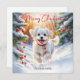Maltese Terrier Dog In Winter Snow Merry Christmas Holiday Card