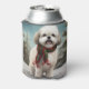 Malti Tzu Dog in Snow Christmas Can Cooler