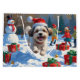 A playful Malti Tzu joyfully runs through the snowy winter scene, wearing a festive red Christmas hat. With its fluffy coat and cheerful personality, this design captures the warmth of the holidays and the charm of this adorable mixed breed, blending seasonal magic with canine delight.