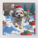 Malti Tzu Running in Snow with Christmas Hat Square Wall Clock