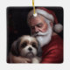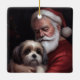Malti Tzu With Santa Claus Festive Christmas Ceramic Ornament