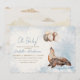 Oh baby cute dreamy mama and baby sea lion illustration baby shower invitation.