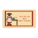 A cute label to add to your homemade goodies features a Mama bear in her kitchen with baking items on yellow striped background and barn red border. Created with graphics by©http://www.countrylifegraphics.com