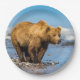This female coastal brown bear was watching her two cubs walking towards her through the shallow waters of Silver Salmon Creek, Alaska.