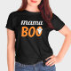 Modern family matching Halloween shirt design features "Mama Boo" text in orange and white with a little ghost accent. Personalise one for each member of your crew.