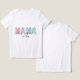 Customisable MAMA t-shirt featuring doodle letters with watercolor backgrounds and editable text field.