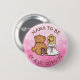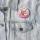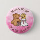 Country and western themed rustic girl's pink and brown baby shower button for the mummy to be with a cartoon cowgirl sitting next to her big teddy bear.