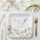 Welcome a precious little one into the world with this delightful baby shower party plate Our sweet mama to bee wildflower design features a gorgeous watercolor floral motif surrounded by fluttering butterflies, bees and whimsical details. Perfect for a boho baby shower, this plate is sure to bring a touch of beauty and charm to this special occasion.