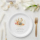 Celebrate the mum-to-be with this cute classic watercolor teddy bear and honeycomb baby shower paper plate, featuring a watercolor teddy bear with tiny wildflowers honeycomb and bees.