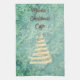 On a dreamy teal backdrop are streaming snowflakes along with a festive gold swirly christmas tree. Cheery christmas vibes. Can be personalised or you can choose to leave the text Mamas Christmas Cafe.