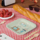 A man with a moustache standing next to his television. This design looks really effective on these Paper Plates