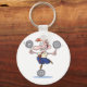 A funny man standing on a cog while balancing cogs. This design looks really effective on this Keychain