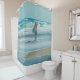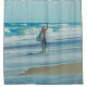 Man carrying surfboard at beach shower curtain