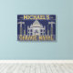 This funny, personalised design is perfect for decorating your man cave. It says, "[Your Name] Garage Mahal" and shows an outline of the Taj Mahal with hammers, screwdrivers and a little car that looks like it's parked in the middle. Easily add your name to the top. The colours are blue, grey and a golden yellow.