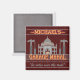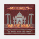 This funny, personalised square magnet is perfect for decorating your man cave fridge. It says, "[Your Name] Garage Mahal" and shows an outline of the Taj Mahal with hammers, screwdrivers and a little car that looks like it's parked in the middle. Easily add your name to the top. The line "he rules over the tools" can also be altered. The colours are red, grey and bright orange.