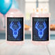 Neon look cool mounted deer antler art on personalised glasses for a man cave - "What happens in the cave, stays in the cave"