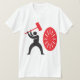 This design is a man hitting a gong. The man has a big red mallet that he is swinging into the red gong. This man hitting a gong design looks great on this Mens T-Shirt