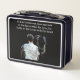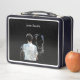 This is a standard metal lunchbox that appears to work just fine. We designed this box ourselves with an uploaded photo and custom text on the front and back. It looks absolutely beautiful except the front of the lunchbox is not centered like it shows in the photo. The print borders don't align with the inset flat part of the box where the preview photo online showed it perfectly centered in there. The back looks nice and centered though.