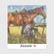 Illustration in van Gogh's painting style, showing a scene in the field of a home cuddling his dog next to his horse.
