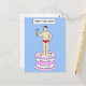 A cartoon man in underpants standing on top of a giant cake saying 'Happy Birthday'. The image has a sky blue background.