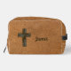 Make a bold statement of strength and devotion with this personalized Christian toiletry bag, crafted in a simulated brown leather style for a rugged yet refined look. The front showcases a powerful royal lion paired with a Christian cross, symbolizing courage, leadership, and unwavering faith. The design is completed with the inspiring message “Man of Faith” — 1 Corinthians 16:13, encouraging spiritual strength and perseverance.