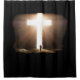 Man Running To Glowing Christian Cross of Jesus Shower Curtain