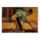 Man Stooping with Stick or Spade by Vincent van Gogh is a vintage fine art post impressionism daily life portrait painting featuring a peasant farmer working in the field on a farm performing his daily chores.
