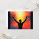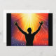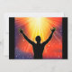 At the heart of this invitation is a stunning graphic featuring a man with his arms raised towards the sun. This powerful imagery conveys a sense of hope, positivity, and a connection with the natural world. The warm, golden rays of the sun illuminate the design, creating a feeling of brightness and optimism.