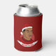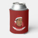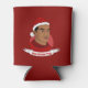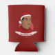 Can cooler with illustration of a African American or Hispanic man with short black hair and red Santa Claus hat; in red circle on a red background, with customisable text template for your name or message