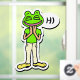 This cheerful computer-generated digital art graphic shows a man with a smiling frog head saying hi. The art is in cartoon sticker style and is on bright yellow. This funny, happy frog man was created using an image generation of the AI source DALL-E, and is sure to be fun for fans of technology, new art, and frogs!
