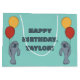 Wrap up gifts in style with the help of these cute manatees. This custom gift bag features illustrations of grey cartoon manatees holding red and yellow balloons against a light blue-green background. Your own personalised message appears on both sides of the bag.