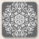 This white mandala sits on a dark grey background. The colours are neutral and reserved and will fit in anywhere. Part of the Pras Mandala Collection.