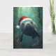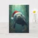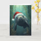 This whimsical Christmas card features an adorable manatee swimming gracefully underwater, wearing a festive Santa hat. Surrounded by seaweed, coral, and bubbles, this design blends the magic of the ocean with holiday cheer. Perfect for manatee lovers, ocean enthusiasts, and anyone who enjoys a unique, coastal twist on Christmas traditions.